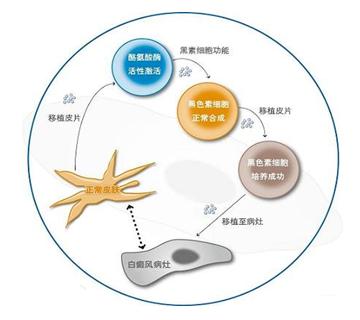 黑色素细胞培植术白癜风,是近年来我院独创的治疗白癜风新疗法。具有疗效肯定、安全、无疼痛感,愈后无疤痕等优点,主要适用于稳定期、局限性,对药物过敏及节段型白癜风患者疗效更佳。本疗法是通过直接将黑色素营养细胞药物,注射到皮内,以激活酪氨酸酶的活性,促进黑色素的生成。经我院对6000多例患者临床观察,受皮部位黑色素产生率在97.59%以上,一般介入治疗后2周内即可生成黑色素。